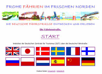 ![]() Website zur Deutschen Fährstraße 6. 12. 2010. Rund 200 Ferienstraßen bzw. Themenrouten gibt es zur Zeit in Deutschland. In einem Rundschreiben an die Trägerorganisationen sämtlicher Routen hat jetzt die Deutsche Zentrale für Tourismus die ehrenamtlich erstellte Website der Deutschen Fährstraße Bremervörde - Kiel wegen der Verlinkung mit vielen Fremdsprachenseiten als mustergültig bewertet und den Touristikern zu Nachahmung empfohlen: "Wie das aussehen könnte, präsentiert sehr vorbildlich die Deutsche Fährstraße auf ihren Seiten," schreibt DZT-Managerin Erika Melsbach (Frankfurt). ![]() Radreiseführer zur "Fährienstraße" Die Deutsche Fährstraße ist 2004 von der AG Osteland ins Leben gerufen worden. Sie wird im Internet in rund einem Dutzend Sprachen beworben. Ein von Jochen Bölsche (Osten) verfasster Reiseführer kann hier geordert werden.