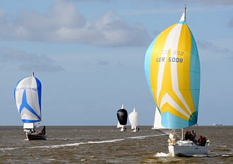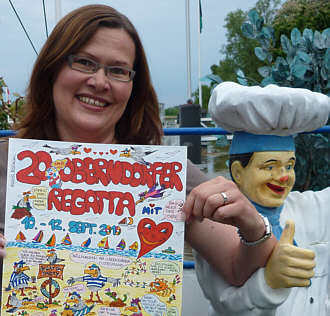 ![]() Kerstin Mählmann mit SGO-Plakat 1. 9. 2010. Aus den Häfen an Oste und Niederelbe sind sie kaum wegzudenken, die großformatigen bunten Wimmelbilder im Comic-Stil (hier anschauen), mit denen die Oberndorferin Kerstin Mählmann seit zehn Jahren für das wichtigste Segelsport-Ereignis der Region wirbt. Mit einer Jubiläumsveranstaltung, der 20. Oberndorfer Herbstregatta "Rund Medemgrund", endet am verlängerten Wochenende 10. bis 12. September in dem beschaulichen Oste-Ort im Kreis Cuxhaven eine Serie von drei Traditionsrennen um den Nordsee-Elbe-Cup, die bereits am 5. Juni mit der "Cuxhavener Seewettfahrt" begonnen hat und am 28. August mit der "Brunsbütteler Elbewettfahrt" fortgesetzt worden ist. ![]() Herbstregatta 2009 in der Elbmündung Den Gesamtsiegern in den Klassen mit und ohne Spinnaker, den sogenannten "Königen der Elbmündung", winkt am Sonntag, 12. September, 21 Uhr, bei einem Regattafest im Festzelt unweit des Yachthafens im Oberndorfer Ortsteil Bentwisch der begehrte "Nordsee-Elbe-Cup", der in Anwesenheit von Bürgermeister Detlef Horeis verliehen wird. Uwe Mählmann, 1. Vorsitzender der Segler-Gemeinschaft Oberndorf (SGO), und seine Vorstandskollegen wagen noch keine Prognosen: "Die Besonderheiten des Reviers und das wechselhafte Wettergeschehen sorgen immer wieder für spannende Regatten und überraschende Ergebnisse." Vor und nach der Siegerehrung spielt die Tanz-Band "Uwe & Herger". Auch eine Tombola mit wertvollen maritimen Preisen ist vorbereitet. Die Fachgruppe "Blaues Netz Oste" der Arbeitsgemeinschaft Osteland e. V. wird für die angereisten Segelsportler aus der gesamten Niederelbe-Region Informationen über das Wassersportrevier Oste und speziell über die touristischen Reize der Samtgemeinde Am Dobrock bereithalten. ![]() Regatta-Wimpel zum Nordsee-Elbe-Cup Eingeleitet wird die Oberndorfer Jubiläumsregatta bereits am Freitag, 10. September, mit einem Skipper-Abend bei Bier und Bratwurst, zu dem Wassersportler aus den Gastvereinen erwartet werden, die gemeinsam mit der SGO die Wettkämpfe veranstalten: die Seglervereinigung Brunsbüttel (SVB), die Segler-Vereinigung Cuxhaven (SVC), die Seglervereinigung Freiburg (SVF) und die Segler-Vereinigung des TSV Otterndorf (SVO). Zentrales Ereignis ist der Start der Regatta "Rund Medemgrund" am Samstagmorgen auf der Neufeld-Reede in der Nähe der Reede-Tonne 4. Nach dem Zieldurchgang geht's wieder die Oste aufwärts zur Oberndorfer Steganlage, wo alle teilnehmenden Yachten einen kostenlosen Liegeplatz finden. Am Sonntag ist dann Gelegenheit, den Hafenort Oberndorf und dessen Umgebung kennenzulernen.