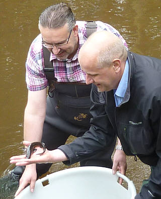 19. 6. 2010. Zeven / Bremervörde / Osten. In Anwesenheit vieler Vertreter von Presse, Funk und Fernsehen, Kommunalpolitik und Sportfischerei ist am Sonnabend erstmals der Oberlauf der Oste mit jungen Stören besetzt worden. Bei Offensen (Samtgemeinde Zeven) startete damit die zweite Etappe des Versuchs, den in Deutschland ausgestorbenen Kaviarfisch im längsten Nebenfluss der Niederelbe wieder heimisch zu machen. Nachdem bereits im April vorigen Jahres Jungstöre versuchsweise im Unterlauf der Oste bei Bremervörde ausgesetzt worden waren, sei nun ein "neuer Meilenstein für den Artenschutz" gesetzt worden, urteilt die Arbeitsgemeinschaft Wanderfische Oste, zu der sich Sportfischervereine und die AG Osteland zusammengeschlossen haben. Die in Offensen ausgesetzten Störe sind mit Miniatursendern bestückt, mit deren Hilfe Berliner Fischereiforscher das Verhalten der Tiere während der nächsten Wochen zunächst von einem Kahn, dann von einem Kajütboot aus verfolgen können. Die Aktion ist Bestandteil eines internationalen Projekts zur Wiedereinbürgerung des im 20. Jahrhundert auch in der Oste ausgerotteten Urzeitfischs, über das eine Ausstellung mit dem Titel "Die Rückkehr des grauen Riesen" Auskunft gibt, die vom kommenden Sonnabend, 26. Juni, 15 Uhr, an in der "Fährstuv" am Fährplatz in Osten zu sehen sein wird. Die Ausstellung, zu der Wolfgang Schütz (AG Wanderfische) und Jochen Bölsche (AG Osteland) historische Fotos, Gerätschaften der einstigen Störfischer von der Oste sowie Störpräparate zusammengetragen haben, wird vom Vorsitzenden der Weltgesellschat zur Erhaltung des Störs, Prof. Dr. Harald Rosenthal, eröffnet. Der Fischereiforscher wird darlegen, inwiefern er die relativ naturnahe Oste als einen "Eckpfeiler" bei dem Versuch ansieht, die Existenz des nur noch in der französischen Gironde in freier Wildbahn vertretenen Europäischen Störs (Acipenser sturio) zu sichern. Bei der Besatzaktion in Offensen begrüßte der Bürgermeister der Samtgemeinde Zeven, Johann-D. Klintworth, das Artenschutzvorhaben und wünschte den Tieren "viel Lebenskraft und viele Nachkommen". Klintworths Stellvertreter Dirk Glaß, zugleich Vizevorsitzender des Angelsportvereins Zeven, setzte die Jungstöre daraufhin gemeinsam mit dem Projektleiter Dr. Jörn Geßner in das Wasser der Oste. Versuchsleiter Geßner zeigte sich erfreut über das "positive Echo in der gesamten Region", das der Versuchsbesatz gefunden habe, und insbesondere über die Unterstützung durch die Sportfischer und die AG Osteland, die sich "in den letzten Jahren ein Bein für den Stör ausgerissen" hätten. Dank sagte der Fischereiwissenschaftler auch dem Sponsor Eddy Meyer-Rochow für eine Spende zugunsten der Telemetrietechnik zur Verfolgung der Versuchsstöre sowie der Offenser Dorfgemeinschaft um deren Ehrenvorsitzenden Karl-Walter Bluhm; zur Ehre dieser beiden Männer erhielten die ausgesetzten Störe die Namen "Eddy" und "Karl-Walter". Zuversichtlich äußerte sich Projektleiter Geßner über die Eignung der Oste für eine Wiederansiedlung des Störs. An dem Elbnebenfluss war es den Sportfischern in den vergangenen Jahrzehnten bereits gelungen, den ebenfalls ausgestorbenen Lachs wieder heimisch zu machen, so dass die Oste in Fachkreisen heute als "Deutschlands Lachsgewässer Nummer eins" gilt. Die aktuelle Besatzmaßnahme erfolgt im Rahmen eines seit 1996 gemeinsam von Deutschland und Frankreich durchgeführten Projektes zur Arterhaltung und Wiederansiedlung des Europäischen Störs. Damit werde, so Geßner, "nach den ersten erfolgreichen Untersuchungen zur Wanderung und Habitatnutzung des Europäischen Störs in der Oste versucht, die bislang bestehenden Wissenslücken zu schließen". Das Projekt wird, wie Dr. Henning von Nordheim vom Bundesamt für Naturschutz (BfN) erklärt, als ein "wichtiger Beitrag zur Rückkehr der Störe in den Nordseeraum und zu den Bemühungen zum Schutz der globalen Biodiversität" eingeschätzt. Das Bundesamt für Naturschutz fördert mit Mitteln des Bundesministeriums für Umwelt (BMU) seit Mitte der 1990er Jahre Projekte zum Wiederaufbau von Beständen des Europäischen und des Atlantischen Störs in deutschen Flüssen und Meeresgebieten der Nord- und Ostsee. Diese Projekte werden, unterstützt durch Fördermittel des Bundesministeriums für Bildung und Forschung (BMBF) und des Landes Mecklenburg-Vorpommern, federführend von der Gesellschaft zur Rettung des Störs e. V. in Zusammenarbeit mit dem Leibniz-Institut für Gewässerökologie und Binnenfischerei (IGB) in Berlin und der französischen Cemagref seit 1996 durch den Austausch von Tieren und durch enge wissenschaftliche Zusammenarbeit realisiert. Das Projekt ist Bestandteil einer langfristigen Strategie zum Aufbau sich selbst reproduzierender Bestände heimischer Störarten, nachdem diese durch intensive Fischerei sowie zunehmende Gewässerverbauung und -verschmutzung seit Mitte des 19. Jahrhunderts einen massiven Bestandseinbruch erfahren haben. Ziel des aktuellen experimentellen Besatzes ist es, für den zurzeit im deutschen Nordseeeinzugsgebiet als ausgestorben bzw. als verschollen geltenden Stör wichtige Informationen zu Lebensraumansprüchen und Gefährdungsfaktoren zu erheben, die wesentliche Grundlagen für die weiteren Arbeiten zur Wiederansiedelung in seinem ursprünglichen Verbreitungsgebiet der Nordsee und ihren Zuflüssen darstellen. Eine weitere Voraussetzung für die Rückkehr des Störs ist - neben der Verfügbarkeit intakter Lebensräume - die Passierbarkeit der Ströme und ihrer wichtigsten Nebengewässer, um die Wanderung dieser Art zwischen ihren Laichgebieten im Oberlauf der Flüsse und der Hauptnahrungsgebiete im Meer zu gewährleisten. Hierfür muss auch nach Ansicht der Arbeitsgemeinschaft Osteland und der Sportfischervereine an der Oste für eine verbesserte Passierbarkeit der Flüsse für Störe und andere Wanderfischarten, etwa durch die Errichtung von artgerechten Aufstiegshilfen an Wehren, gesorgt wer