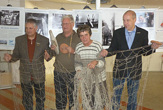 ![]() Herbert und Helga Günther (M.) mit historischem Netz 29. 11. 2010. Der Europäische Stör ist - bis auf einen winzigen Restbestand in der französischen Gironde - radikal ausgerottet worden. Zwei der einst in der Oste gebräuchlichen Störnetze, etwa 130 Jahre alt, sind jedoch noch erhalten. Die Ostener Sportfischer Herbert und Helga Günther haben die seltenen Relikte vor Jahren in Großenwörden vor der Müllabfuhr gerettet und am Montag in einer Feierstunde in Osten dem Fischwissenschaftler Dr. Jörn Gessner vom Berliner Leibniz-Institut für Gewässerökologie und Binnenfischerei übergeben. Die Veranstaltung wurde ausgerichtet von der AG Wanderfische Oste, in der sich die AG Oste und die Sportfischervereine vom Fluss gemeinsam für die Wiederansiedlung des Störs einsetzen. - Ausführlicher Bericht hier.