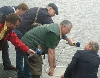 "Verlorenen Schatz" für die Oste gesichert ![]() Großes Medieninteresse an den Jungstören 11. 5. 2012. Unter starker Medienanteilnahme - vier TV- und Funk-Teams waren angerückt - übergaben der Berliner Fischereibiologe Dr. Jörn Geßner und seine Mitstreiter aus der Arbeitsgemeinschaft Wanderfische der AG Osteland am Freitag 200 junge Störe der Unteren Oste. Am Steg des Bootsclubs Elm bei Bremervörde sagte Geßner, der Kaviarfisch, der vor rund 100 Jahren in Deutschland ausgestorben war, sei ein "kulturhistorisches Denkmal" und ein "verlorener Schatz", den es dem Osteland zurückzugeben gelte. "Europaweit beobachtet" werde der Wiederansiedlungsversuch, zeigte sich der Elmer Ortsbürgermeister Erich Gajdzik stolz darauf, dass die Wahl des Besatzortes auf den gastfreundlichen örtlichen Bootsclub gefallen war. Ebenso wie der Sprecher der Arbeitsgemeinschaft Wanderfische Oste, Wolfgang Schütz, sprach Gajdzik die Hoffnung aus, dass es eines Tages möglichst vielen der ausgesetzten Jungfische aus französischer Nachzucht gelingen möge, nach den Jahren im Meer in die Oste zurückzukehren und sich dort zu vermehren. ![]() Unter den Zuschauern: "Lachsvater" Peters (l.) Noch vor anderthalb Jahrzehnten, berichtete Projektleiter Geßner vom Berliner Leibniz-Institut für Gewässerökologie und Binnenfischerei, habe jeder als "versponnen" gegolten, der sich für eine Wiederansiedlung des Europäischen Störs eingesetzt habe. Mittlerweile habe eine Reihe von Besatzexperimenten, auch in der Oste, die Hoffnung genährt: "Es ist möglich, wenn wir an einem Strang ziehen." Geßner bestätigte, dass die Oste für das Störprojekt nicht nur wegen ihrer Gewässerstruktur ausgewählt worden sei, sondern auch wegen des Engagements ihrer Anwohner, insbesondere der Sportfischer und der Akteure der AG Osteland, denen er für "organisatorische und moralische Unterstützung" dankte. ![]() Gefragter Interviewpartner: Bürgermeister Gajdzik Aufmerksam verfolgt wurde die Aktion nicht nur von Vertretern aus Naturschutz und Kommunalpolitik, sondern auch von den Mitgliedern der deutschen Gesellschaft zur Rettung des Störs, die am Wochenende zu ihrer Jahresversammlung an die Oste gereist waren. Ihnen gilt der Urzeitfisch, den es schon vor den Dinosauriern gab und der bis zu fünf Meter lang und bis zu 100 Jahre alt werden kann, als "Botschafter für die Renaturierung und Revitalisierung der heimischen Gewässer". In die Fluten entlassen wurden die Jungstöre nicht nur von Projektleiter Geßner und dem "Störvater" Schütz. Hilfe leisteten auch bekannte Sportfischer wie Ernst Peters (Zeven), der unter Artenschützern als "Lachsvater von der Oste" gilt und dem es gemeinsam mit Mitstreitern wie Egon Boschen (Lamstedt) in den letzten drei Jahrzehnten gelungen war, den vor etwa 50 Jahren ausgerotteten Lachs in der Oste wieder heimisch zu machen. Dass die Oste heute wieder als "Deutschlands Lachsfluss Nummer eins" gilt, ermutigt nunmehr die Störschützer, auf ein "zweites Wunder an der Oste" zu hoffen. ![]() Begrüßung durch Wolfgang Schütz (2. v. l.) Begrüßt wurde von den Vertretern der Störgesellschaft, dass an der Oberen Oste begonnen worden ist, alte Stauwehre und andere künstliche Wanderfisch-Hindernisse zu entschärfen. Nun richteten sich die Hoffnungen der Naturschützer darauf, dass auch das Bremervörder Wehr, die letzte noch verbliebene Barriere am längsten Nebenfluss der Niederelbe, endlich wanderfischgerecht umgestaltet wird, wie AG-Osteland-Vorsitzender Jochen Bölsche bekräftigt. AG-Osteland-Vorstandsmitglied Schütz bestätigte, dass die nächste große Besatzaktion im September in Oberndorf (Kreis Cuxhaven) stattfinden wird. Ministerpräsident David McAllister habe sich bereit erklärt, bei dieser Gelegenheit den 1000. Jungstör in die Oste auszuwildern.