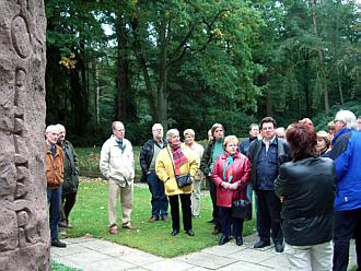 Beginn der Exkursion an der Lagerkirche
