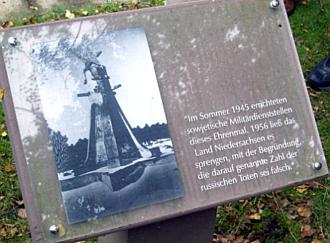 Die dreisprachige Inschrift des sowjetischen Ehrenmals lautete: �Hier ruhen 46.000 russische Soldaten und Offiziere, zu Tode gequält in der Nazigefangenenschaft."