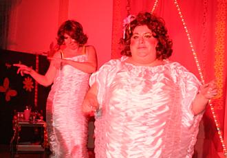Eine Fette aus Dingsda schleppt sich auf die Bühne, kurzatmig, in
