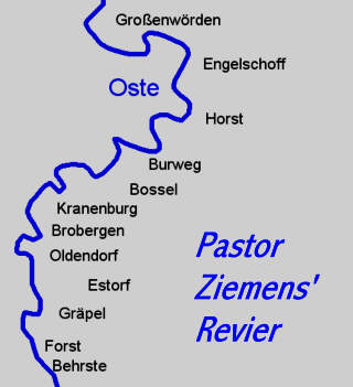 5. 9. 2007. Von Forst bei Gräpel bis Horst und Großenwörden reicht sein Amtsbezirk: Seit der Oldendorfer Pastor Burkhard Ziemens als "Dauervakanzvertreter" für den nach Otterndorf verzogenen Burweger Pastor Eckhard Krol zusätzlich die Kirchengemeinde Burweg/Großenwörden betreut, ist er für Anrainer-Gemeinden der Oste auf einer Strecke von 35 Stromkilometern verantwortlich; das ist ziemlich genau die halbe Länge der Unteren Oste.