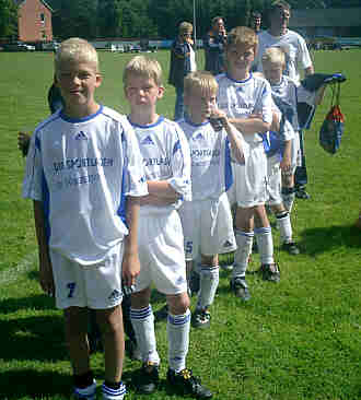 6. 7. 2008. Die Ü-32-Mannschaft des TSV Großenwörden hat für die neue Saison einen neuen Satz Trainingsanzüge vom "freundlichen Opelhändler" Stefan ("Pik") von Holten erhalten. Die Kicker hoffen, damit jetzt noch mehr Punkte und Siege einzufahren. Das Foto von Heinz Heinsohn zeigt rechts den Stifter mit seiner Tochter.