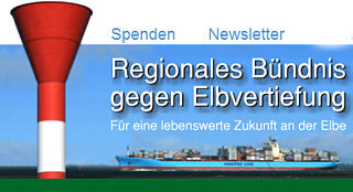 2. 1. 2012. Wegen eines Serverwechsels ist die Website der Elbvertiefungsgegner jetzt unter der Adresse www.pro-unterelbe.de/elbe/ erreichbar. Jüngster Beitrag: Nachdem Silvester der Entwurf des Planfeststellungsbeschlusses den Ländern zugestellt worden ist, signalisieren die Naturschutzverbände "hohe Klagebereitschaft" für den Fall, dass Niedersachsen der Elbvertiefung zustimmt.