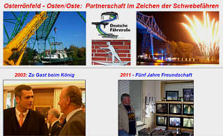 1. 1. 2012. Mit diesem Foto, das Thomas Schult (Lamstedt) auf der Gondel der Schwebefähre Osten - Hemmoor gelungen ist, grüßen die Fährmänner nicht nur die Leser der Silvester-Ausgabe der Niederelbe-Zeitung, sondern auch das internationale Publikum der Schwebefähren-Seite auf Facebook. Die Freunde von der "pont transbordeur" in Rochefort haben dort bereits das Urteil "Gefällt mir!" hinterlassen. Prost 2012!