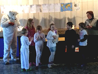 Die Kinder erfuhren nicht nur nicht nur Wissenswertes über das energieoptimierte Eisbärenleben, sie konnten auch an einem Eisbären-Quiz teilnehmen bekamen zum Schluss auch noch süße Bärentatzen.