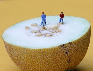 Witz gestaltete Foto-Kompositionen mit Miniaturfiguren im H0-Format, wie