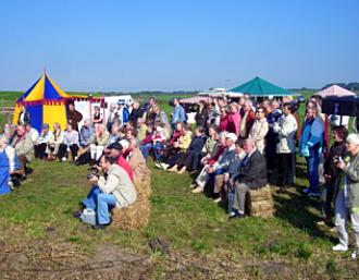 ... bevor die Zuhörer, auf Strohballen hockend, ...