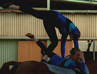 Die Fotos zeigen die Gruppe Großenwörden III bei ihrer Kür. In der Kür hat die Gruppe 5 Minuten Zeit, das Pferd mit bis zu zwei Turnern frei zu umturnen; dabei müssen in dieser Leistungklasse zehn von 12 Pflichtkürübungen gezeigt werden.