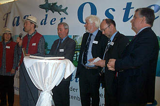 26. 3. 2006. "Ein Festtag für die Oste" - so bezeichneten Ehrengäste am Sonntag den 2. "Tag der Oste" der AG Osteland e. V. im Bremervörder Oste-Hotel. Vor 170 Teilnehmern - darunter allein vier Bundestagsabgeordnete und rund zwei Dutzend Bürgermeister - nahmen Preisträger aus den Landkreisen Cuxhaven, Stade und Rotenburg den mit 3000 Euro dotierten Oste-Kulturpreis "Der goldene Hecht" entgegen, der in sechs Kategorien verliehen wurde.