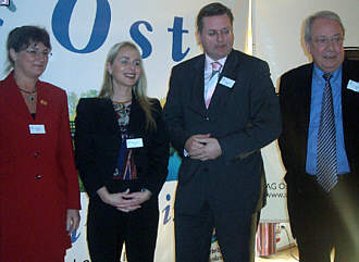 Nach einer Talkrunde (Moderator: Johannes Schmidt, Hemmoor) trugen sich die Landräte Gunter Armonat (Stade) und Dr. Hans-Harald Fitschen (Rotenburg/Wümme) sowie Vize-Landrat Volker Feldmann (Cuxhaven) in das Goldene Buch der Europa-Kutsche ein, mit der die Hechthausener Christine und Jürgen Reimer als "Botschafter des Ostelandes" im April zu einer 6000-Kilometer-Reise durch sechs europäische Länder aufbrechen.